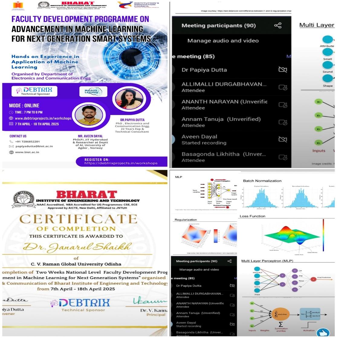 ECE Department has organised Two weeks Faculty Development Program from7thApril-18 th April 2025 in association with IIT Hyderabad on Advancement in Machine Learning for Next Generation Smart Systems.