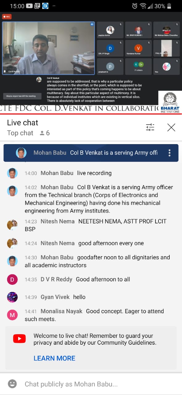 Department of ECE organized one day online National Level Webinar on New Education Policy 2020: Way Ahead and Research Funding on 10th June 2021 ,Resource Person ,Col. B Venkat , Director AICTE, FDC