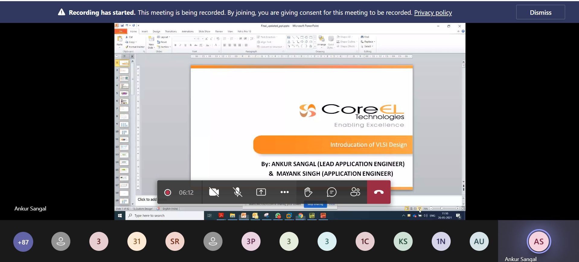 Department of Electronics and Communication Engineering, conducted One Day National Workshop with Hands-on Training in association with Entuple Technologies Pvt& Ltd on ‘Cadence EDA Tool’ on date: 07 September, 2021
