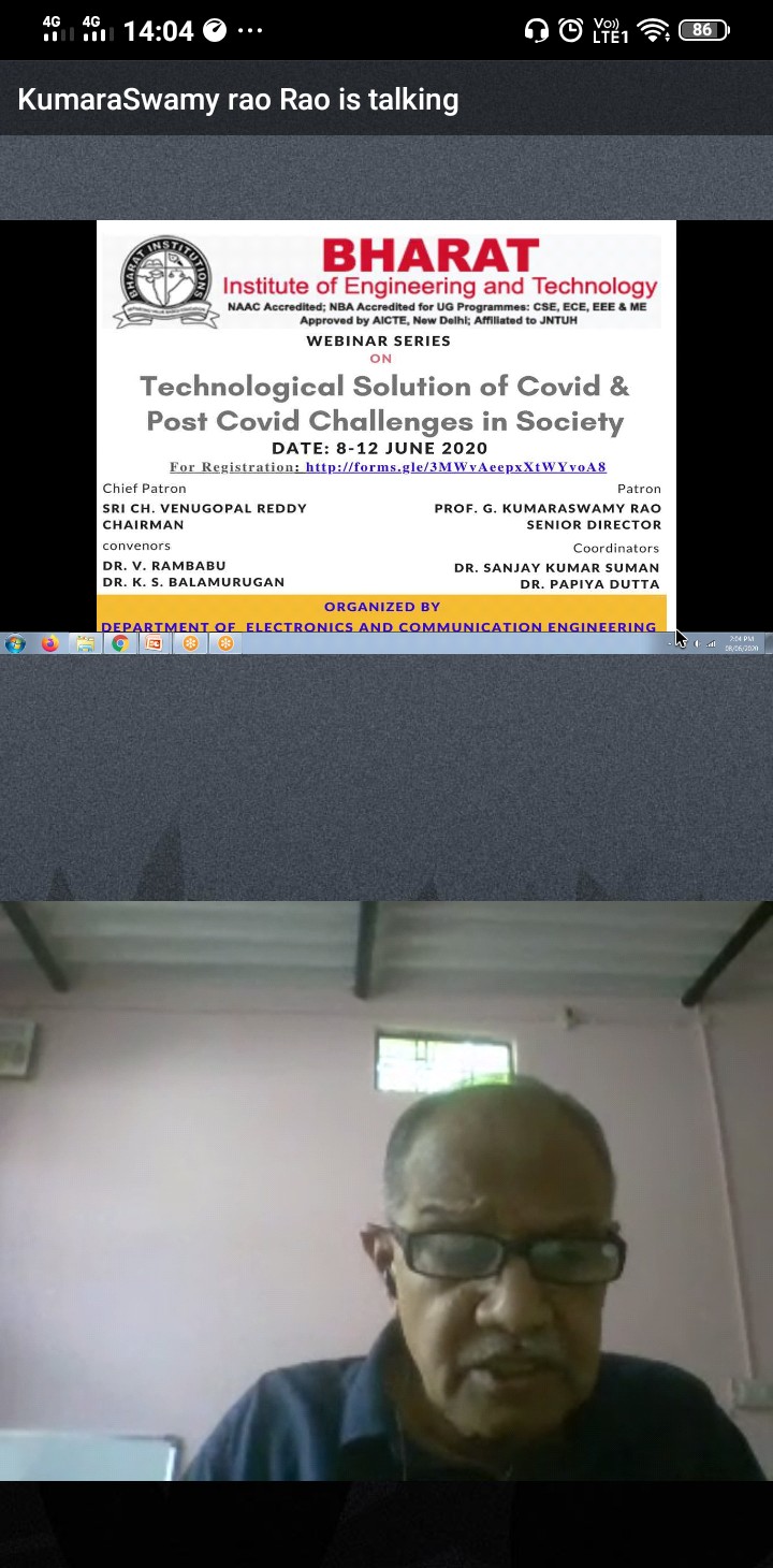 Webinar Series on Technological Solution of Covid and Post Covid Challenges in Society From 08-06-2020 to 12-06-2020.