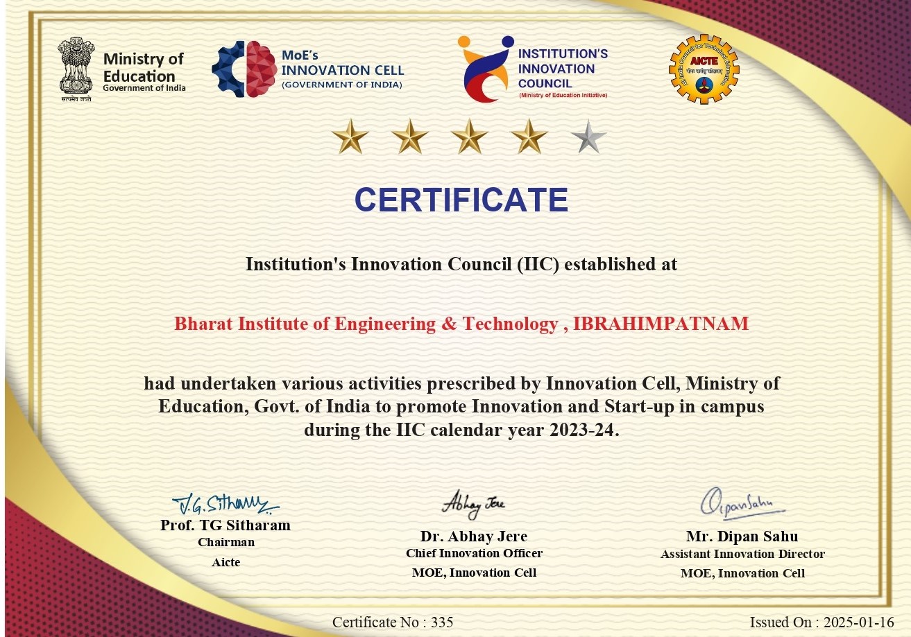 In the year 2018, the Ministry of Education (MoE) through MoE’s Innovation Cell (MIC) launched the Institution’s Innovation Council (IIC) program in collaboration with AICTE for Higher Educational Institutions (HEIs) to systematically foster the culture of innovation and start-up ecosystem in education institutions. IICs’ role in BIET is to engage large number of faculty, students and staff in various innovation and entrepreneurship related activities such as ideation, Problem solving, Proof of Concept development, Design Thinking, IPR, project handling and management at Pre-incubation/Incubation stage, etc., so that innovation and entrepreneurship ecosystem gets established and stabilized in the institution.