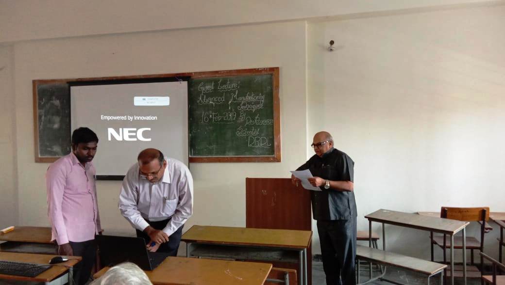 Guest Lecture on "Advanced Manufacturing Techniques" by Dr.Rozario ,Scientist F , DRDL ,Hyderabad, organized by Mechanical Department on 16/02/2019 with number of participants : 70 (B.Tech II YEAR II-Semester ,ME)