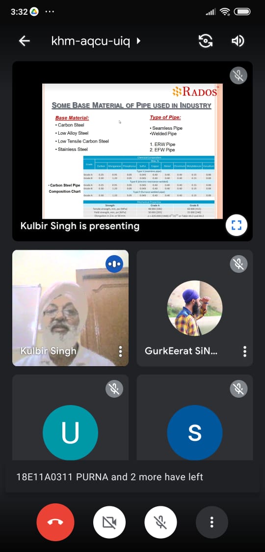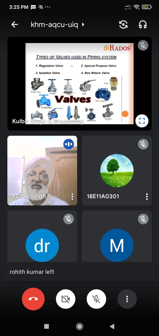 In Collaboration with RADOS ENGINEERING, Mohali, Punjab,Department of Mechanical Engineering Conducted EXPERT Lecture on IMPORTANCE OF PIPING IN INDUSTRY on 18th June 2021