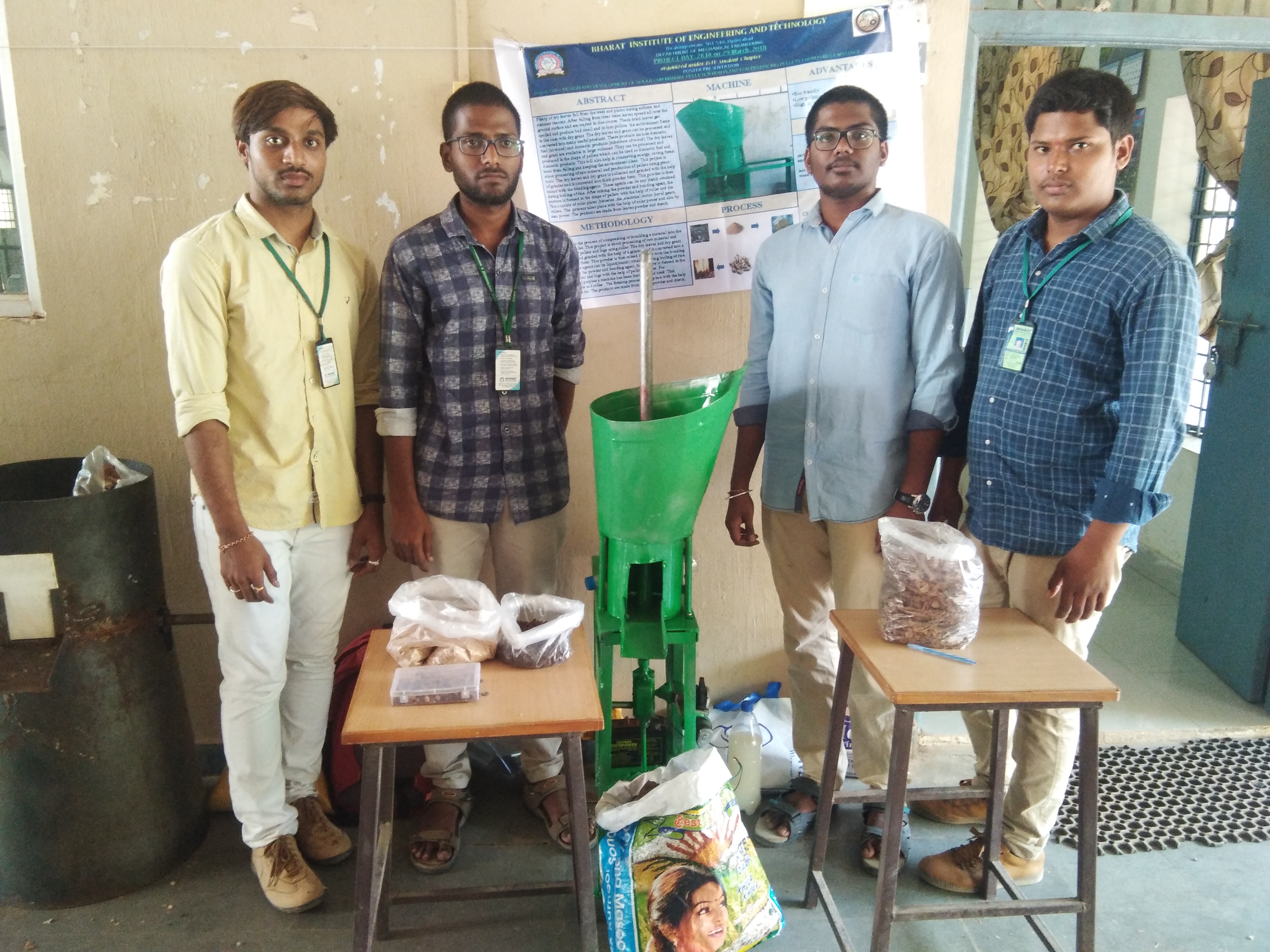 Project Day was conducted on 27th March 2018 at BIET premises Two projects were regarded as the best project they are "Manual Cum Solar Powered Palletization plant for production of Fuel pellets from forest waste" and "Solar powered automated wheel chair for handicapped people".
