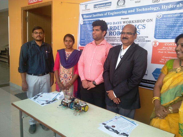 Two DAY Workshop on Robotics for the B.Tech Mech. Students organized by IIT VARANASI in collaboration with Innovians Technologies was organised on 5th and 6th march 2018 at BIET Campus.The students created 5 projects of Robots with Voice Recognition,Bluetooth Device,and Obstacle distractor .40 students enthusistically participated in the workshop.