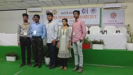 B.Tech IV Year–I Semester ( 2018-2019) students team “ Mech-B “ secured 2nd level at the regional convention for Chatra Viswa Karma Awards , under the auspices of AICTE, New Delhi ,held at SRKR Engineering college ,Bhimavaram, Andhra Pradesh ,on 19.11.2018, under Rural Crafting and Livelihood Stream.The project title is “ Manual and Solar Powered Biomass Pelletization from Forest Waste”. The team consists of following members . Team " Mech- B" 1. Y.Swetha ( Team Leader) 2.E.Sathish Kumar 3.T.Yagna Sai Kumar 4.K.Sudheer Kumar 5.Prof.J.S.Soni ( Guide and Mentor) 6.P.Srinivasa Kumar, Assistant Professor (Mentor)
