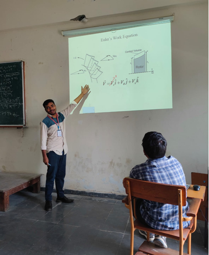Some students are selected randomly. Each student will be asked to play a role for each Mechanical component of the assembly. Each one has to discuss about working of their given component.