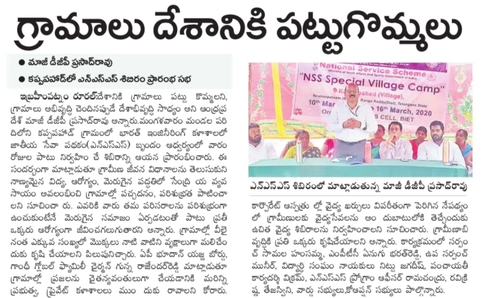 NSS special Village Camp at Kappapahad Village (10-03-2020 to 15-03-2020), Organised by NSS Cell BIET.