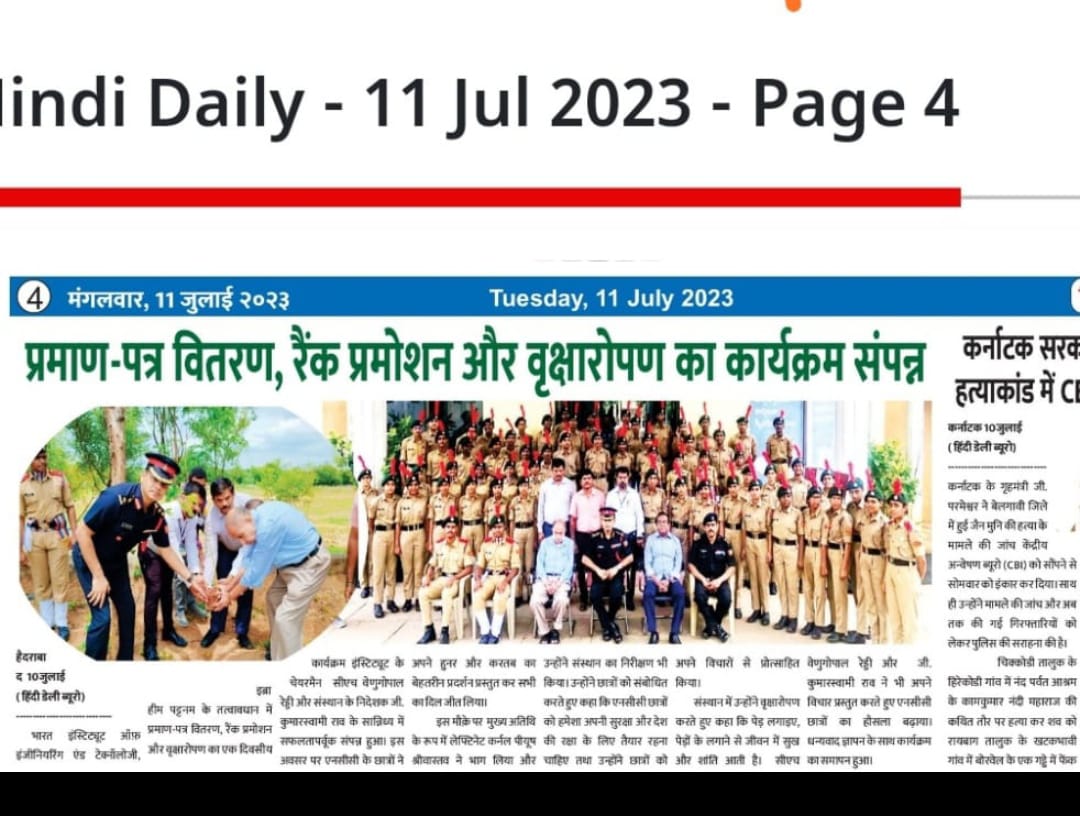 The Commanding Officer Lt Col Piyush Srivastava Sir has visited the NCC team of Bharat Institute of Engineering & Technology, Hyderabad on account of certificate distribution and rank promotion. President Chowdhary Venugopal Reddy and Director Dr. Kumar Swamy have also joined the organization in this event. The Sr. SW presented a guard of honor and two junior cadets became pilots for the CO.