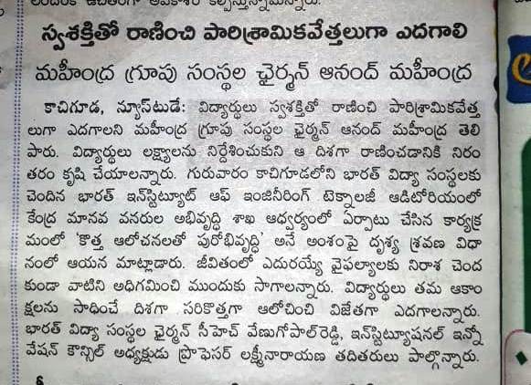 Webinar on leadership skills was conducted by MHRD in association with Innovation Cell on 8th Jan, 2019 and the speaker was Mr. Anand Mahindra, Chairman of Tech Mahindra