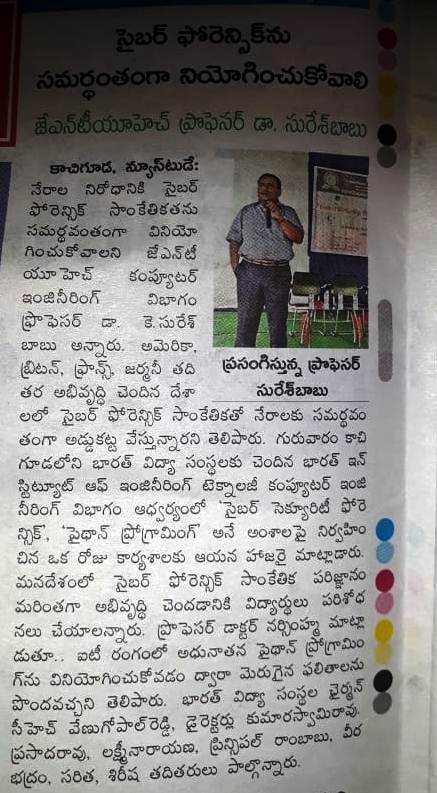 The Department of Computer Science and Engineering has conducted One Day Workshop on Cyber Security, Forensics & Python Programming under CSI & ACM Student Chapters on 7th March, 2019 Speakers: 1) Dr. K. Suresh Babu, Associate Professor, CSE, JNTUH 2) Dr. G. Narimha, Professor, CSE, JNTUH