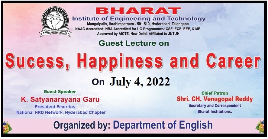 The DEPARTMENT OF SCIENCE & HUMANITIES (H &S), Bharat Institute of Engineering and Technology organized a