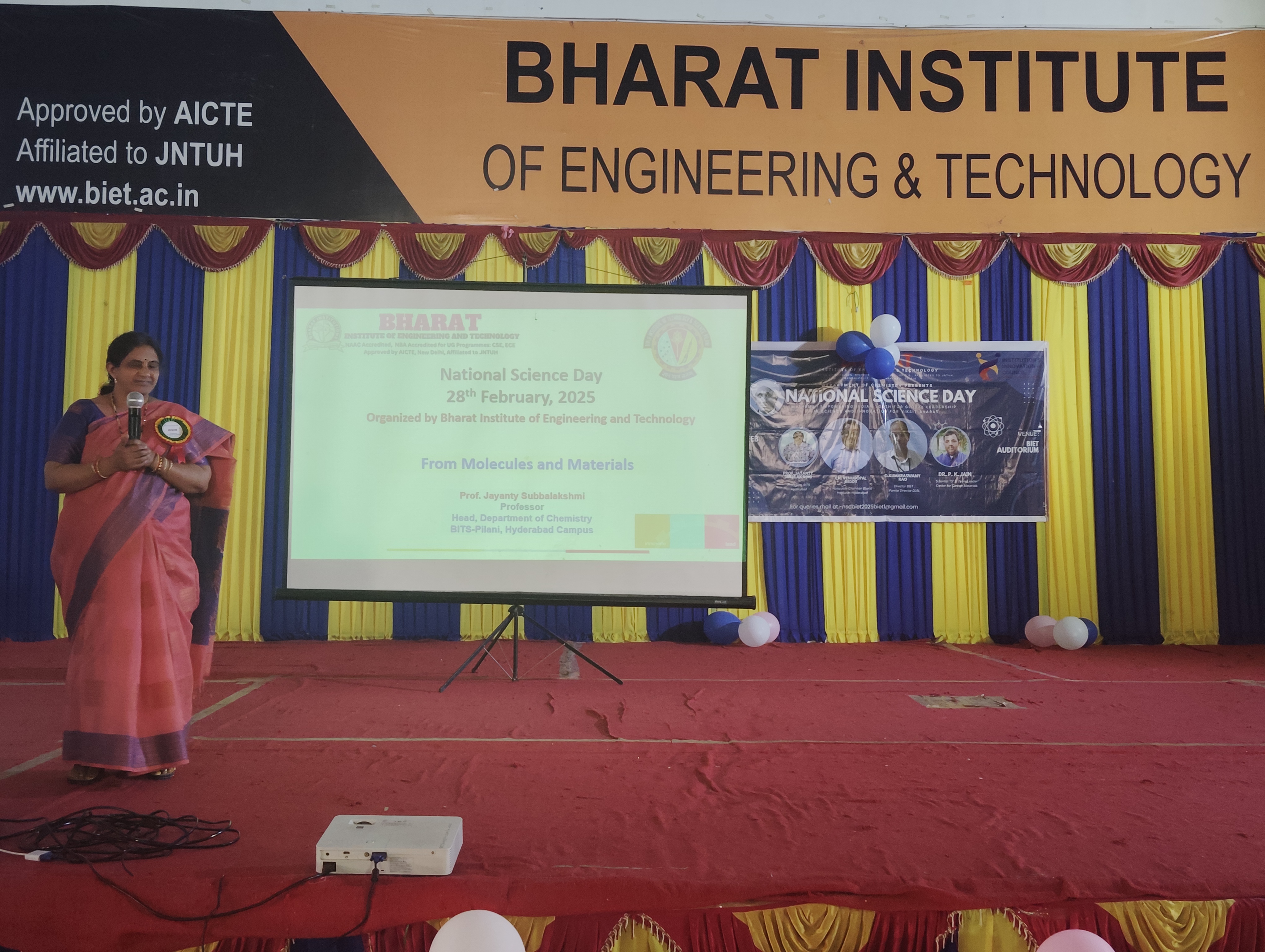 The Department of Chemistry, Bharat Institute of Engineering and Technology (BIET), Mangalpally, Hyderabad organized a 2-Days event ““National Science Day Celebration 2025” for the first year B.Tech students on 27th – 28th February, 2025 in offline mode